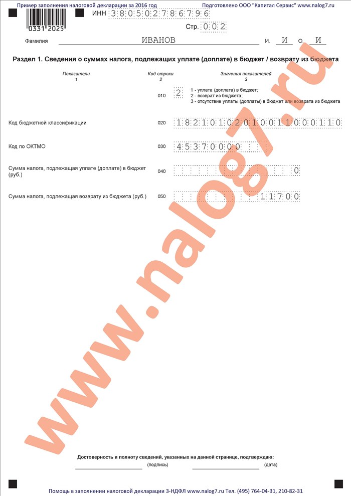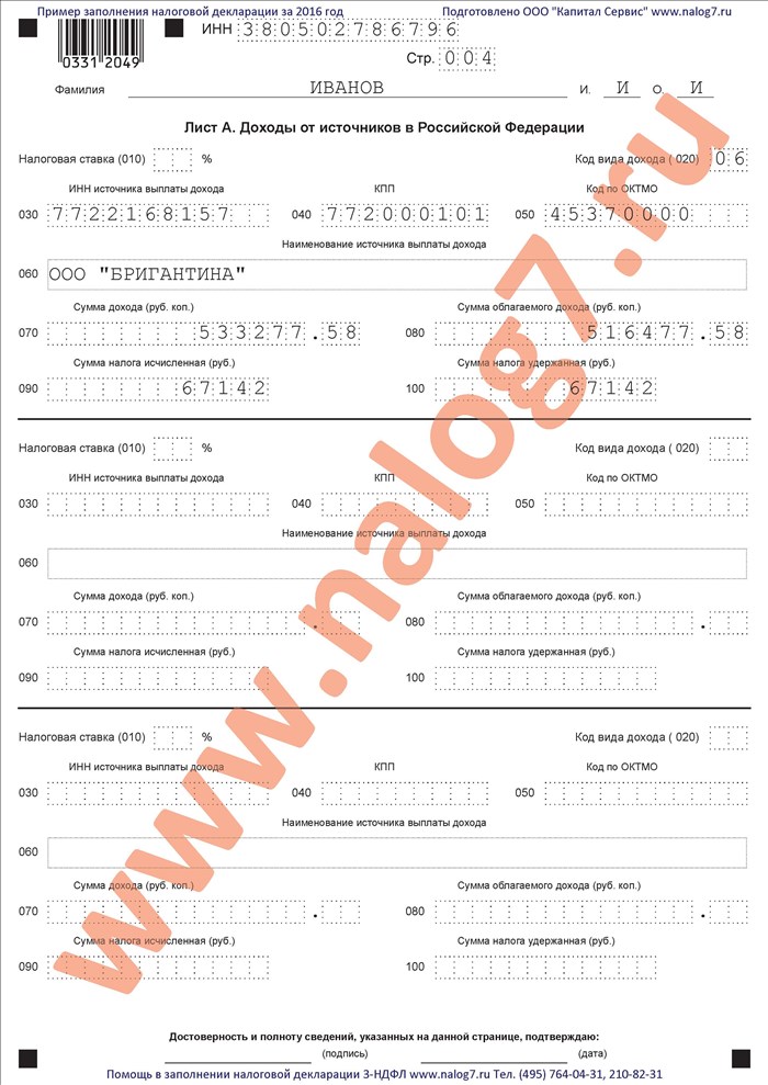Примеры 3-НДФЛ 2016